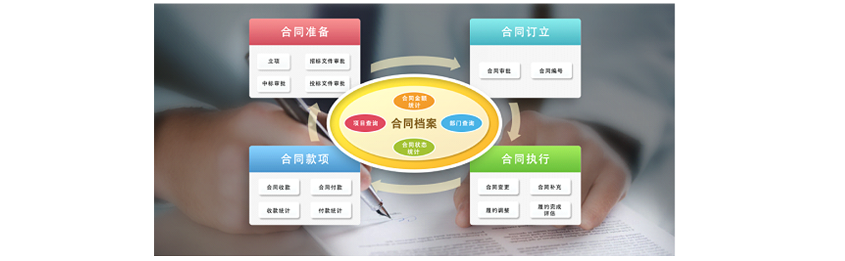 合同訂立:合同擬定的起因可追溯,信息可關聯,特別是針對采購合同,避免了盲目采購,盲目簽約的情況發生。 合同執行:合同執行智能預警,避免人工失誤導致產生合同糾紛。合同關聯業務協作開展,提高執行效率。 合同變更:業務的開展需要合同與之匹配,頻繁的變更能夠得到監管和監控,避免隨意性和不采納意見。 統一平臺:平臺統一才能實現業務的合同歸口,統一管理思想和辦法。 臺賬分析:提供及時、準確,口徑一致的合同臺賬,提高信息質量。