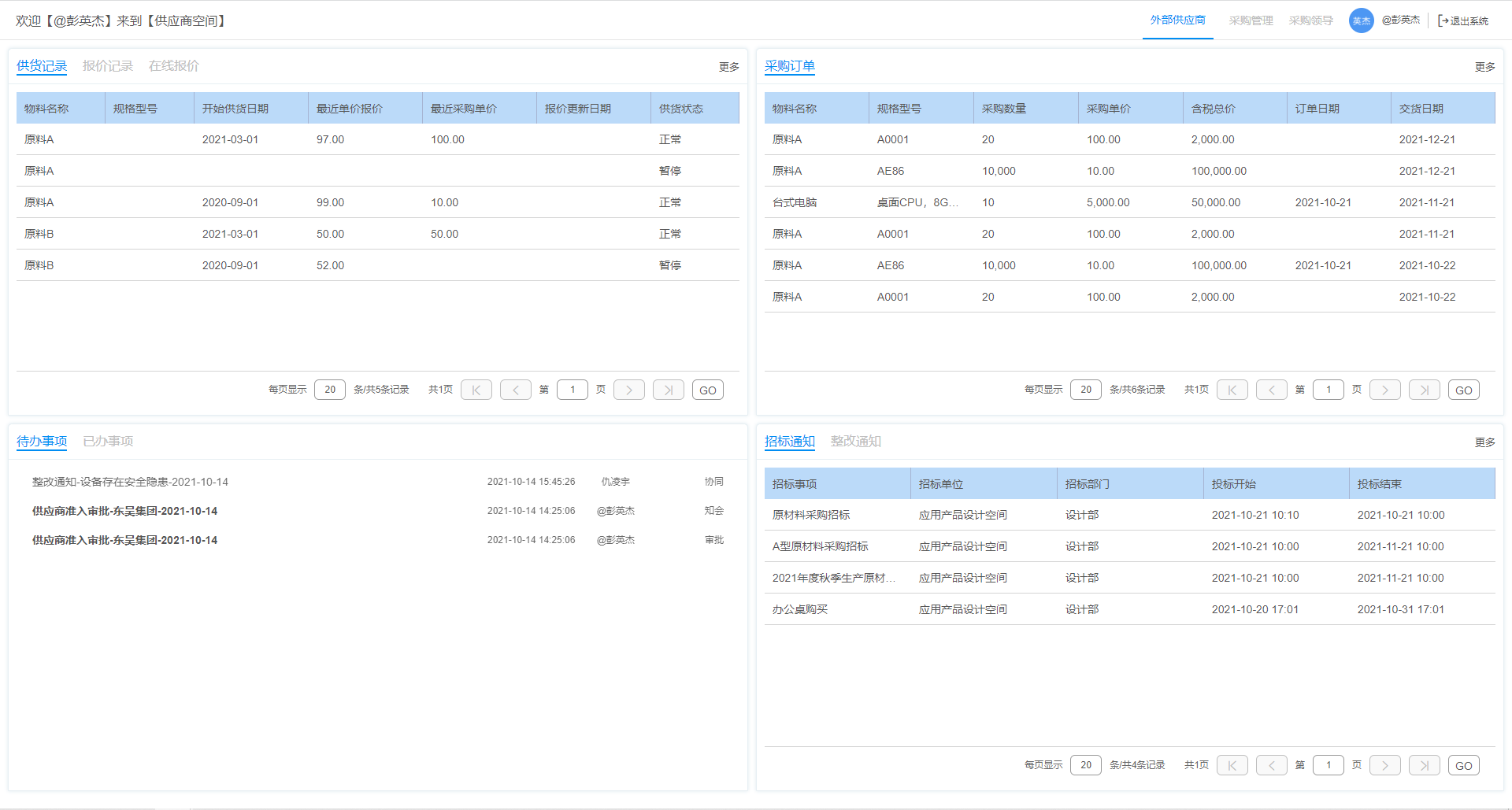 外部供應(yīng)商可以登錄供應(yīng)商門戶,在線更新自身供貨清單中的報(bào)價(jià),或者根據(jù)招標(biāo)信息在線投標(biāo)。相關(guān)數(shù)據(jù)或流程直達(dá)采購(gòu)的相關(guān)人員。