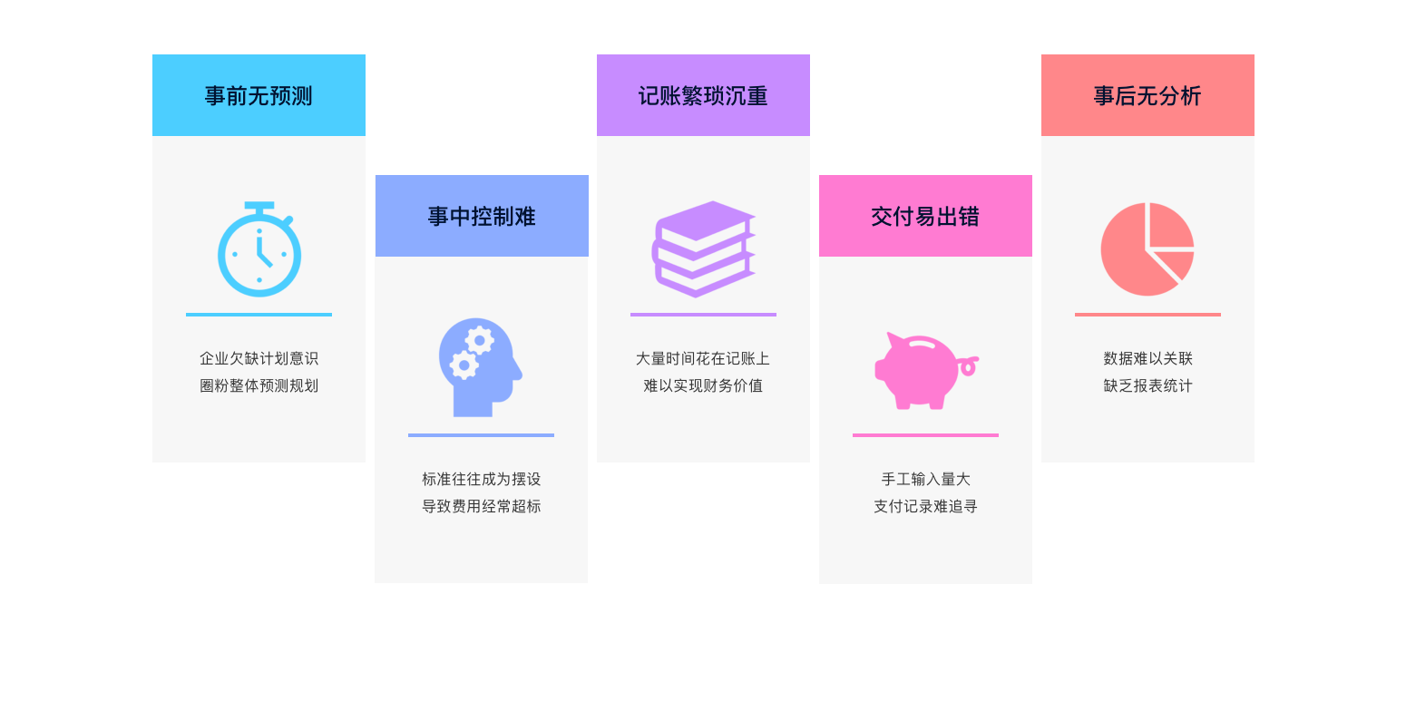 事前計劃:制定政策和計劃時可全方位的查閱歷年的詳細(xì)費控數(shù)據(jù); 事中控制:準(zhǔn)確及時了解各部門、項目預(yù)算使用情況; 事后分析:得到更及時、完整和精確的統(tǒng)計分析報告。