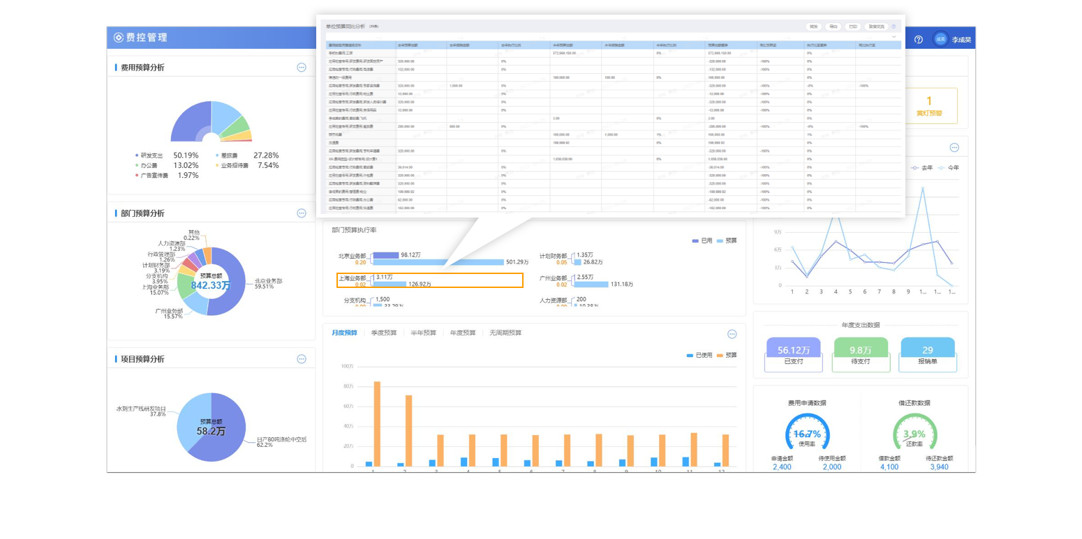 提供全方位、精確的費用預(yù)算執(zhí)行決策分析報告